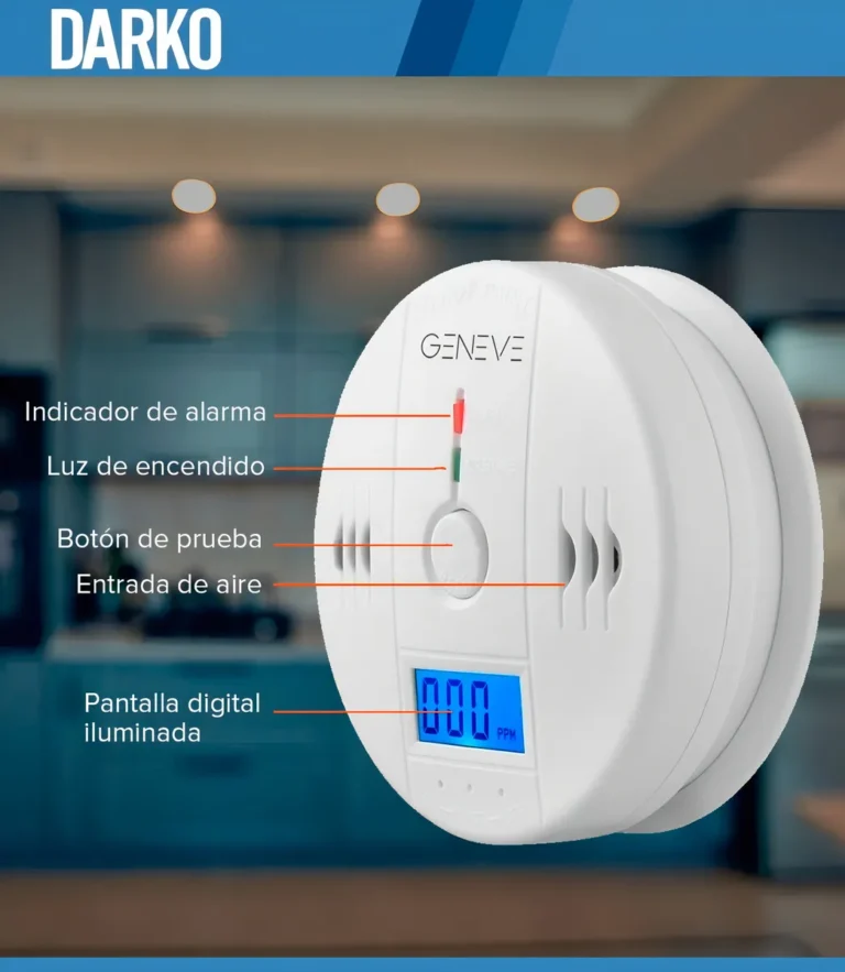Sensores GENEVE - Originales 30 dias garantía del vendedor Los Originales (Pilas no incluidas) Esta alarma nos avisa de los niveles de CO PPM (partes por millón) 50ppm, suena la alarma en 60-90 minutos 100ppm, suena la alarma en 10-40 minutos 300ppm, suena la alarma en 3 minutos